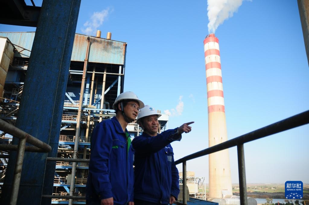 2月11日,在伊拉克瓦西特省,华事德电厂副厂长海德尔(左)在升压站了解电力外输情况。