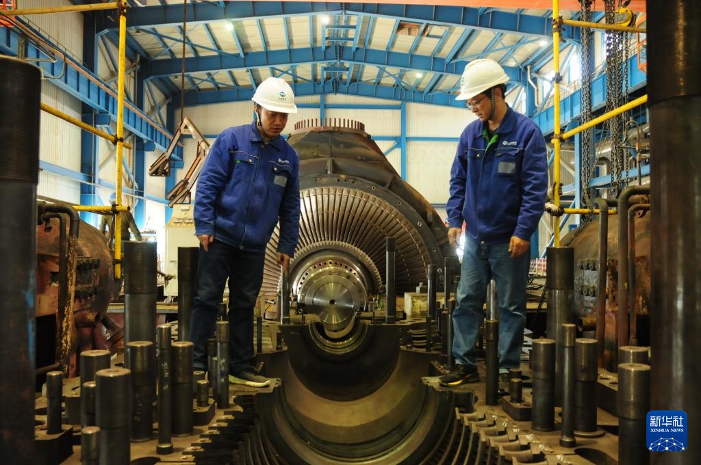 2月10日,在伊拉克瓦西特省,华事德电厂大修项目项目经理徐广江(左)在华事德电厂六号机组检查汽轮机检修质量。