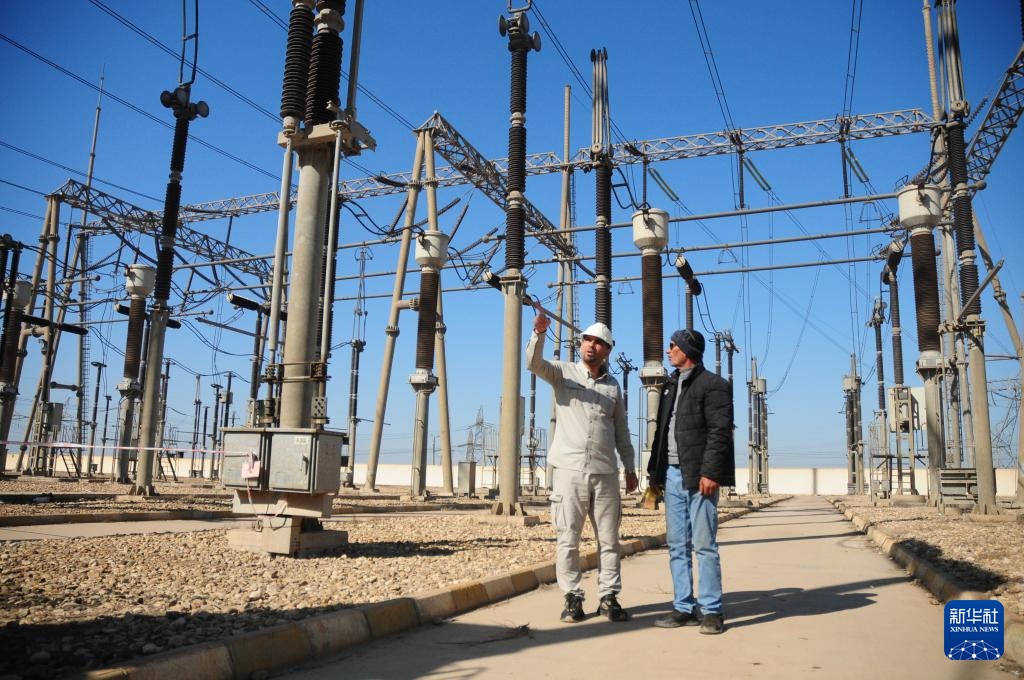 这是2月10日在伊拉克瓦西特省拍摄的华事德电厂升压站。