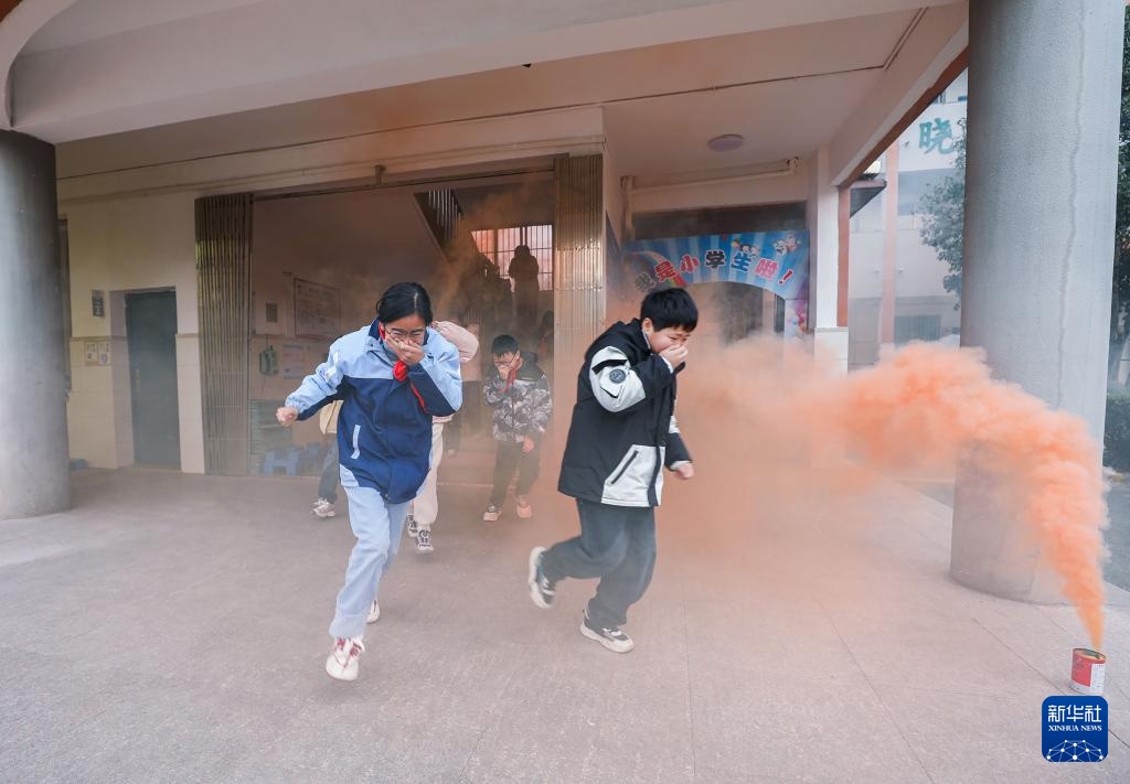 2月14日,东林二小的学生开展应急逃生演练。
