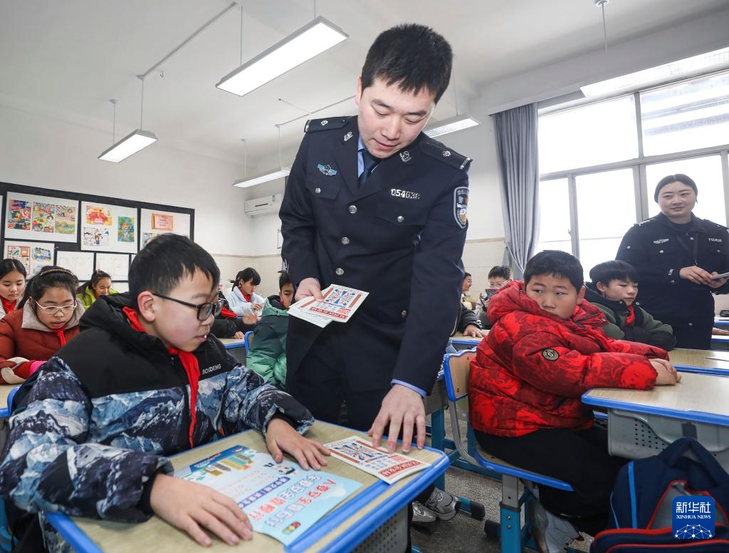 2月14日,东林镇派出所民警在东林二小开设防诈课堂,给学生们普及防诈知识。