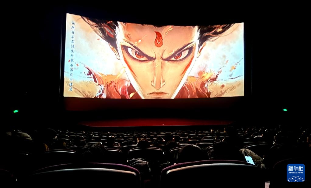 2月14日,观众在北京市海淀区的UME国际影城(华星店)内观看电影《哪吒2》。