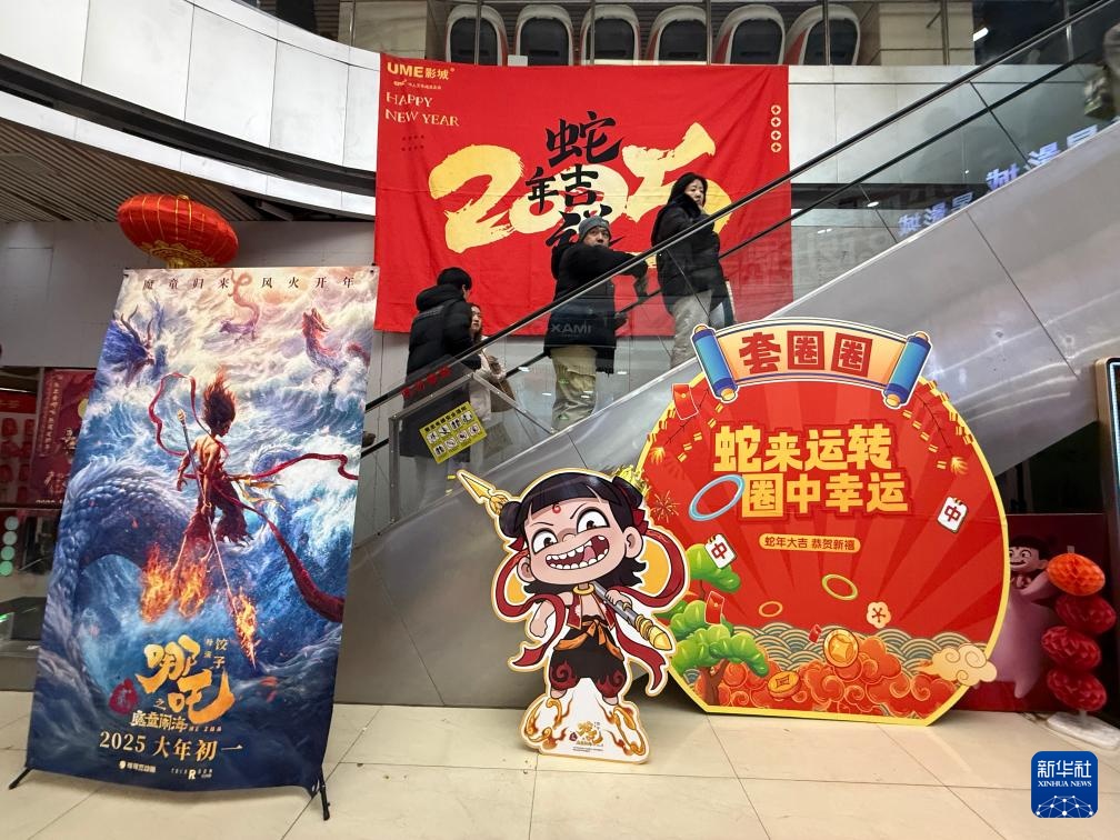 2月14日,在北京市海淀区的UME国际影城(华星店)里拍摄的《哪吒2》电影海报。