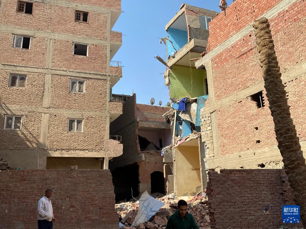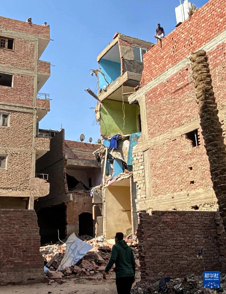 这是2月17日在埃及吉萨省拍摄的发生爆炸的居民楼。