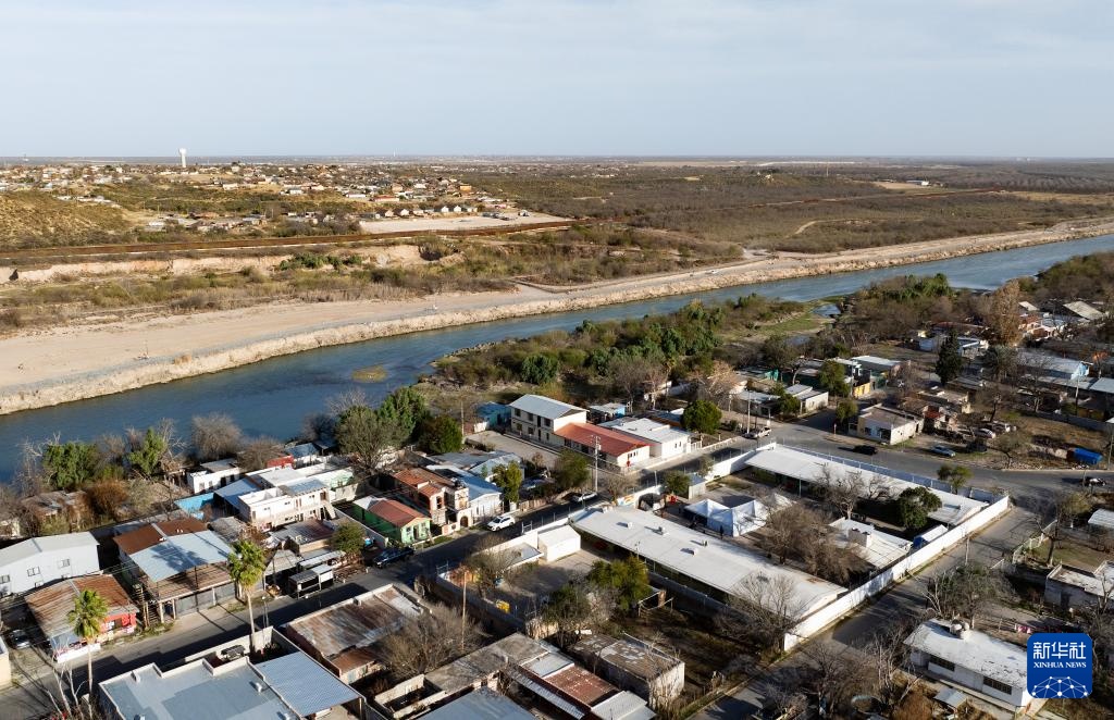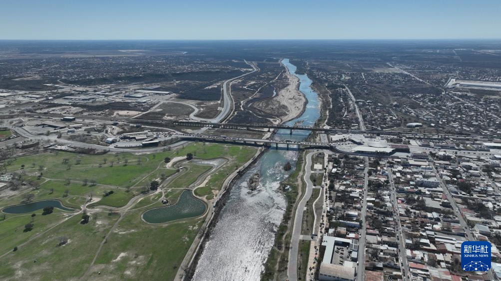 这是2月16日在墨西哥塔毛利帕斯州新拉雷多市拍摄的格兰德河,画面右侧为墨西哥(无人机照片)。