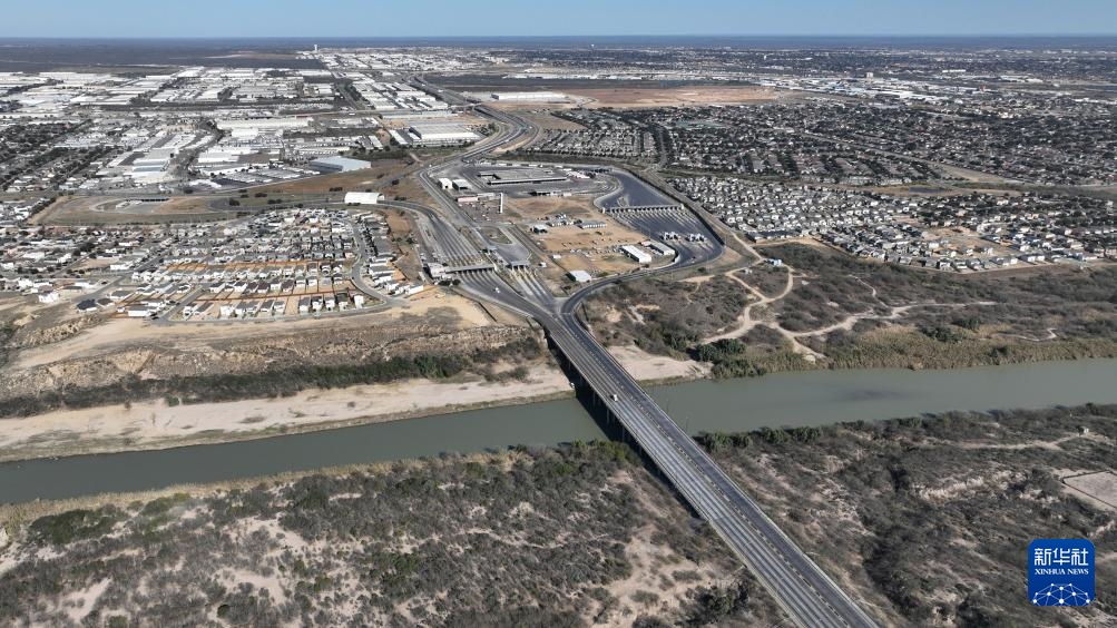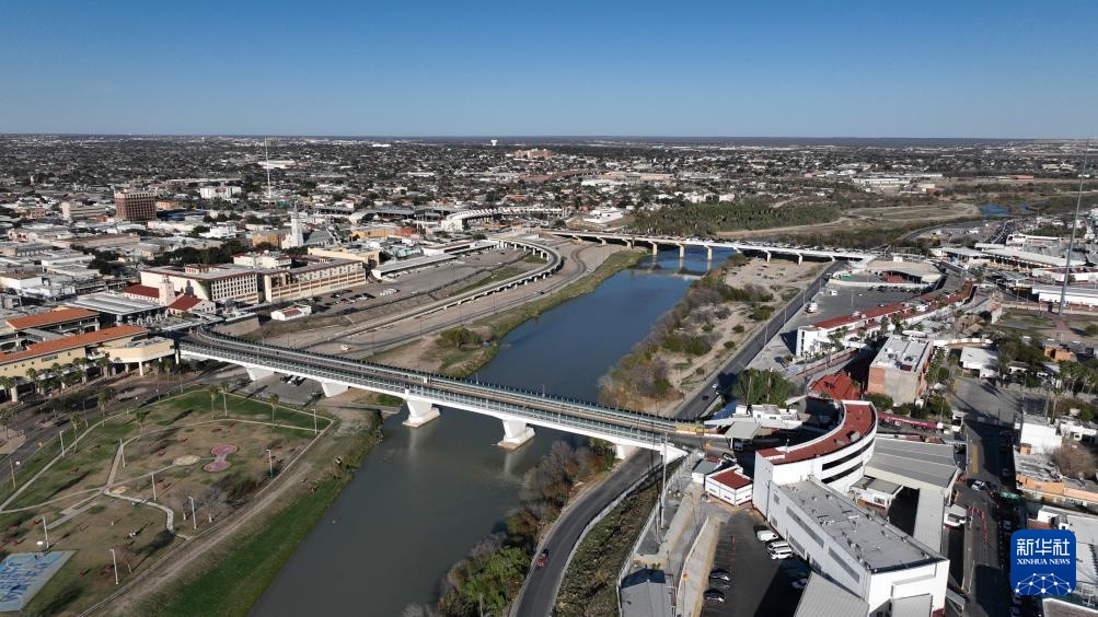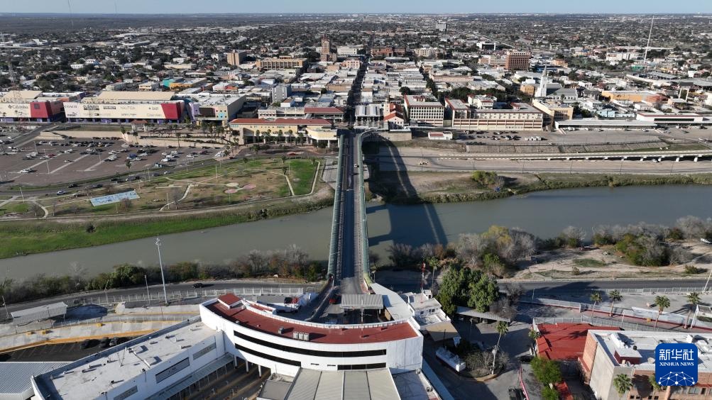 这是2月16日在墨西哥塔毛利帕斯州新拉雷多市拍摄的一处国际桥(无人机照片)。