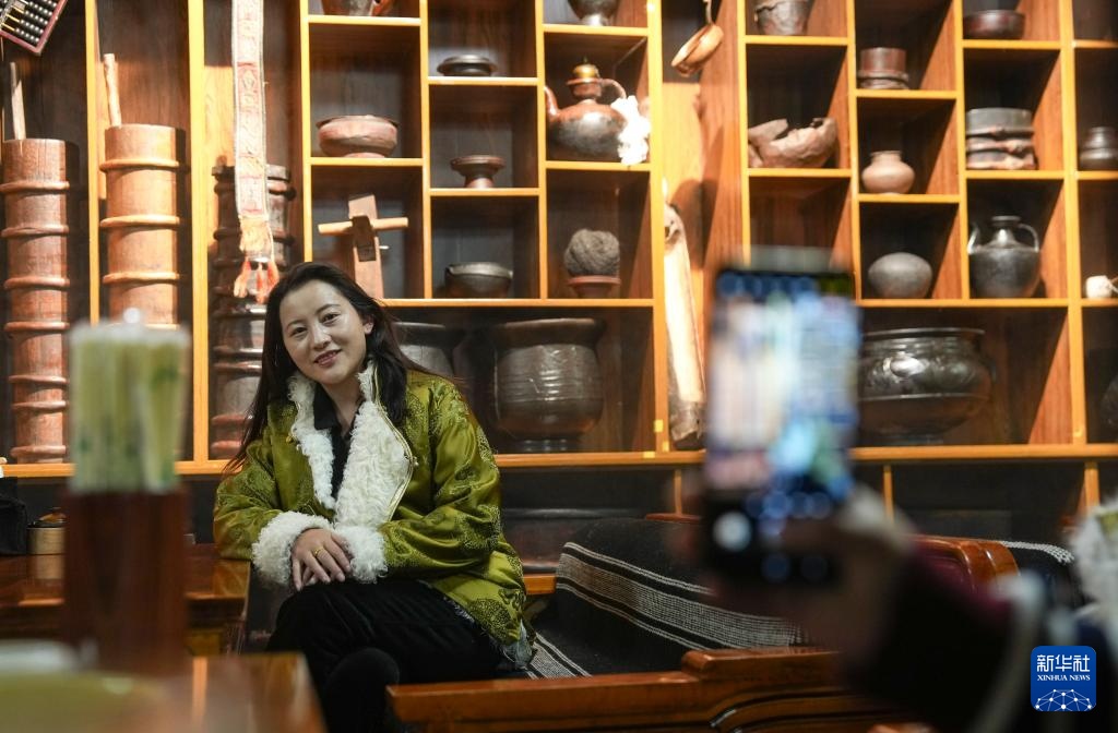 西藏那曲市“牧人宝库”茶馆的主人珠珠(2月13日摄)。