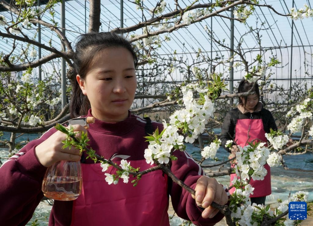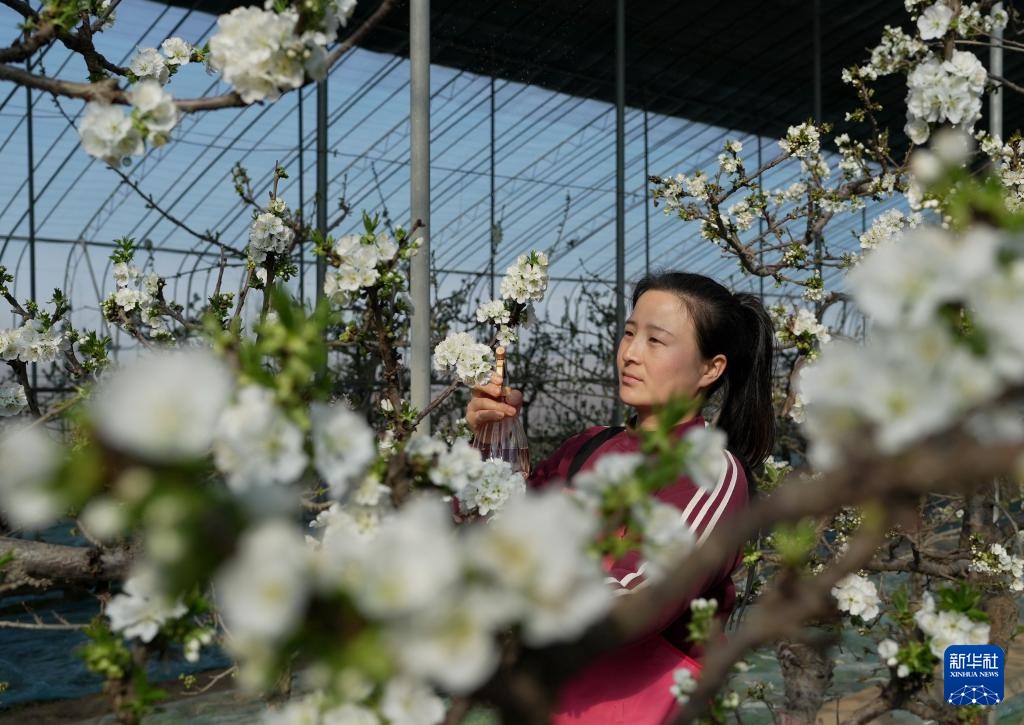 近日,河北省晋州市周家庄乡的大棚内樱桃花绽放,果农忙着给樱桃花授粉,为增产丰收夯实基础。近年来,晋州市引导农民采取“合作社+农户”的模式因地制宜发展大棚樱桃、蔬菜等,助农增收。