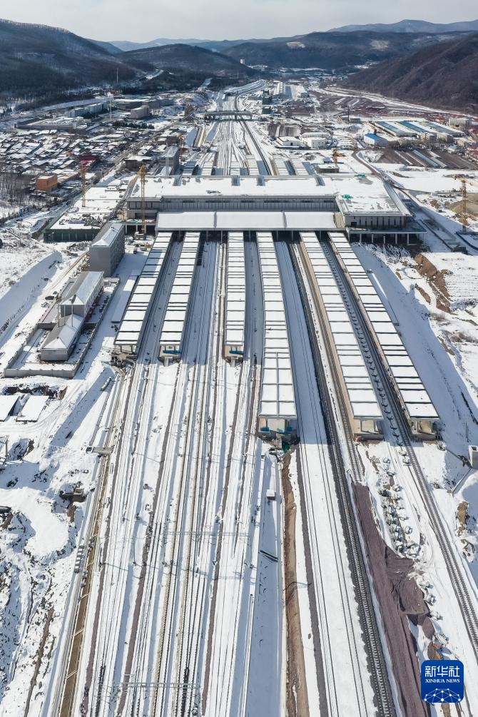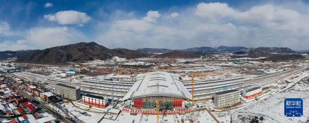 这是2月18日拍摄的通化站建设现场(无人机照片)。