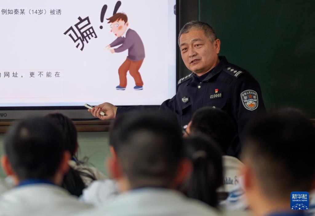 2月19日,乌鲁木齐市公安局天山区分局新民路派出所民警在乌鲁木齐市第80中学为学生普及网络诈骗防范知识。