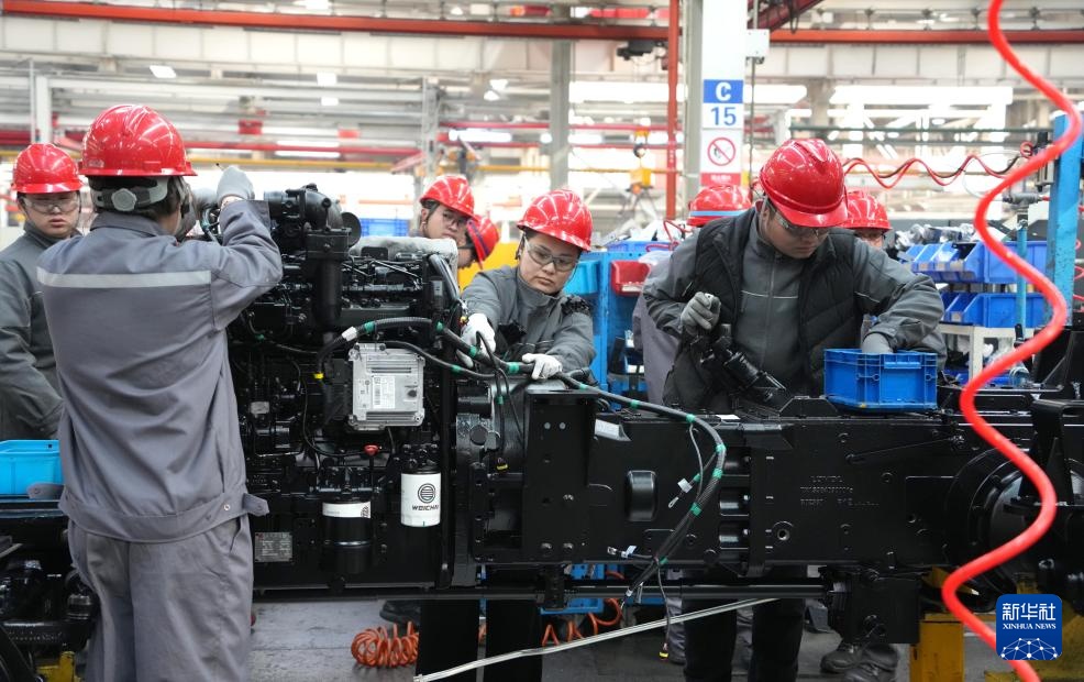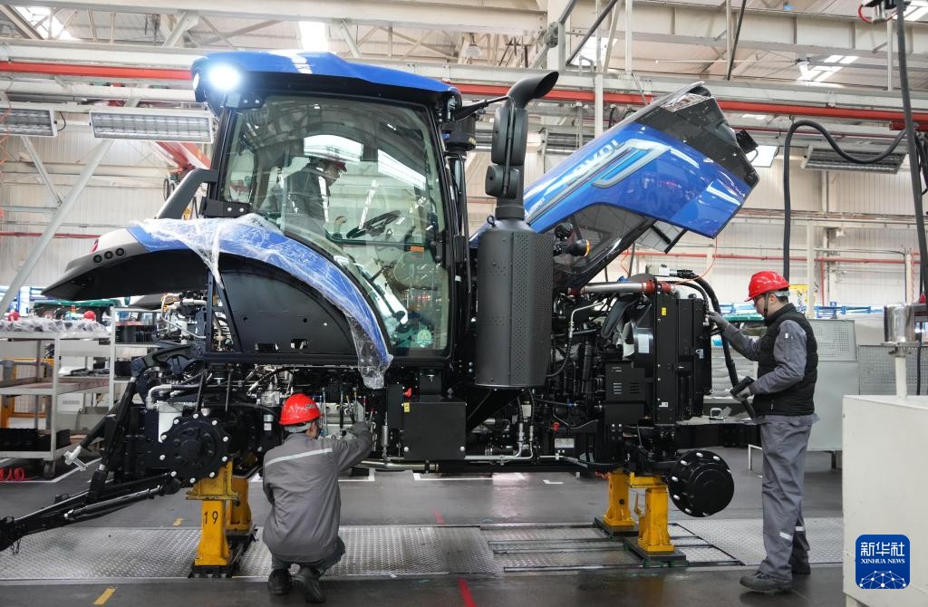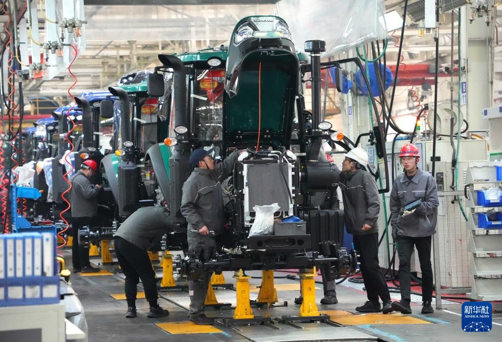 2月19日,工人在位于潍坊市的潍柴雷沃智慧农业科技股份有限公司组装生产农机设备。