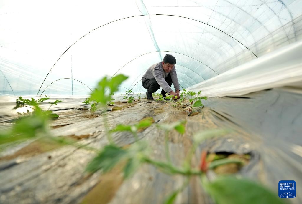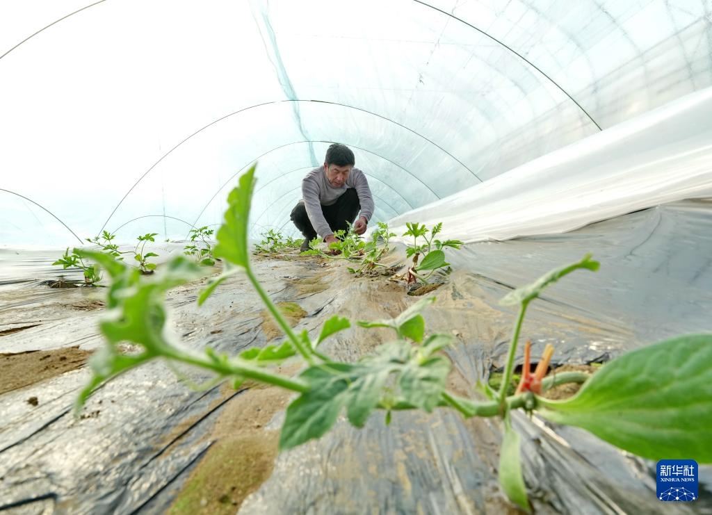 春风和煦,河北省新乐市的瓜农抢抓农时,开始种植大棚甜瓜、西瓜。据介绍,该市今年预计种植甜瓜、西瓜等瓜果6万余亩。