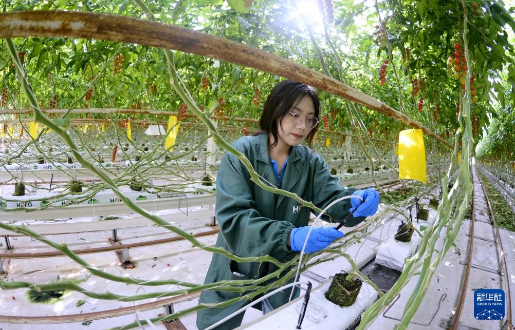 2月19日,技术人员在宏福农业大兴园区的智能温室中检测智能节水管道。