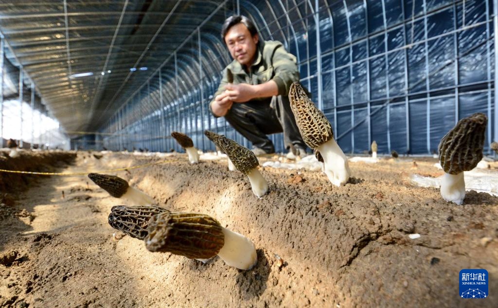 2月19日,北京大兴区庞各庄镇聚棒羊肚菌农场的技术人员在观测羊肚菌长势。