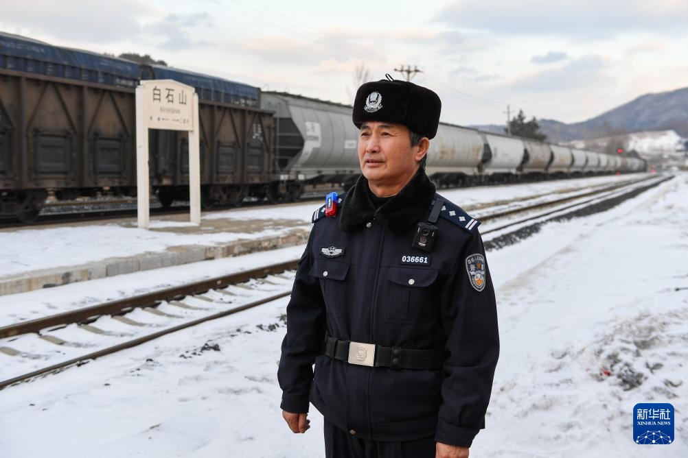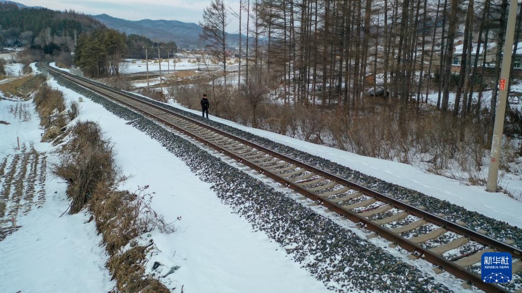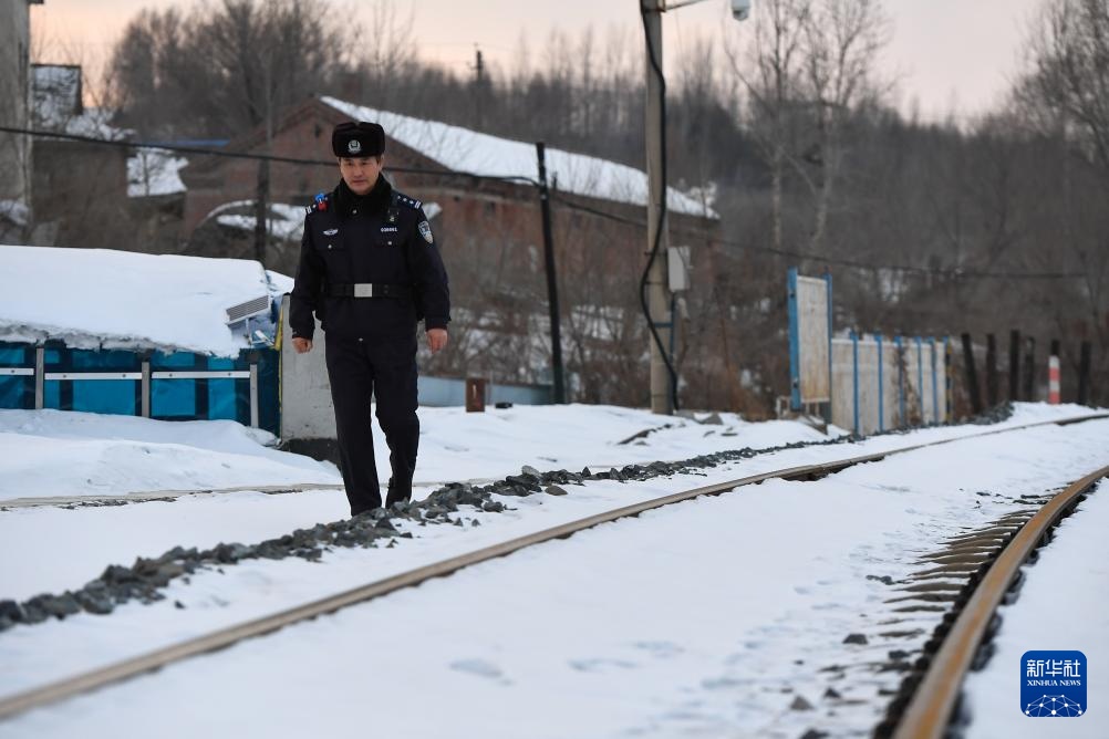 尽管立春已过,吉林省蛟河市仍是一片银装素裹。吉林铁路公安处蛟河站派出所白石山警务室民警杨洪彬,踏着积雪沿着铁路线慢慢行走,专注地巡查铁路线。