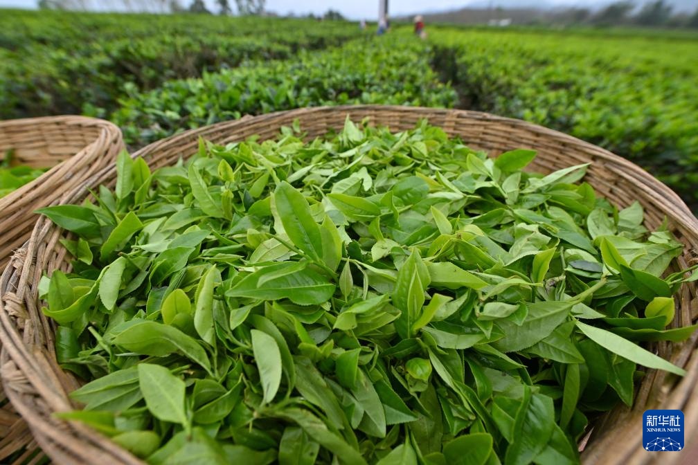 这是刚采摘下来的茶叶(2月21日摄)。