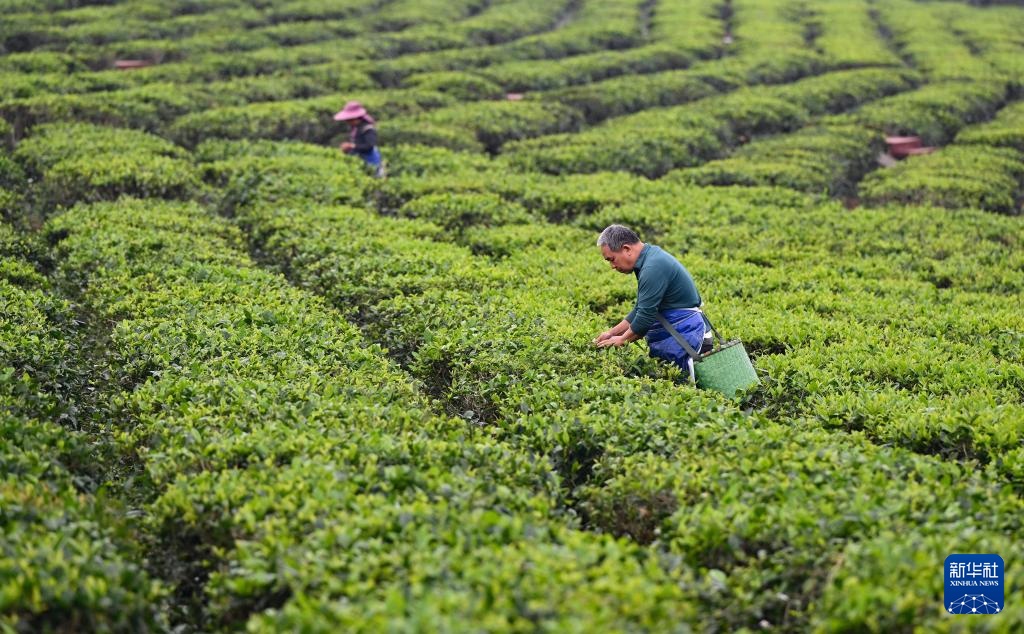 2月21日,茶农在茶园采摘茶叶。