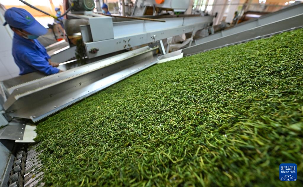 2月20日,工作人员在海南农垦白沙茶业股份有限公司白沙茶厂烘制茶叶。