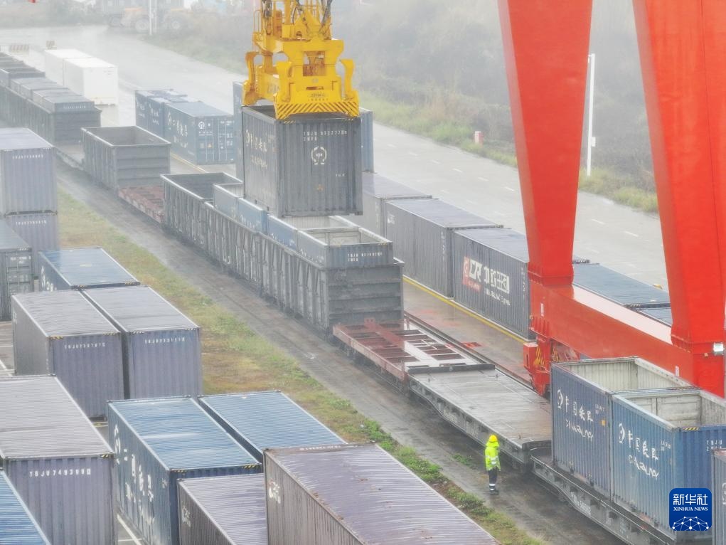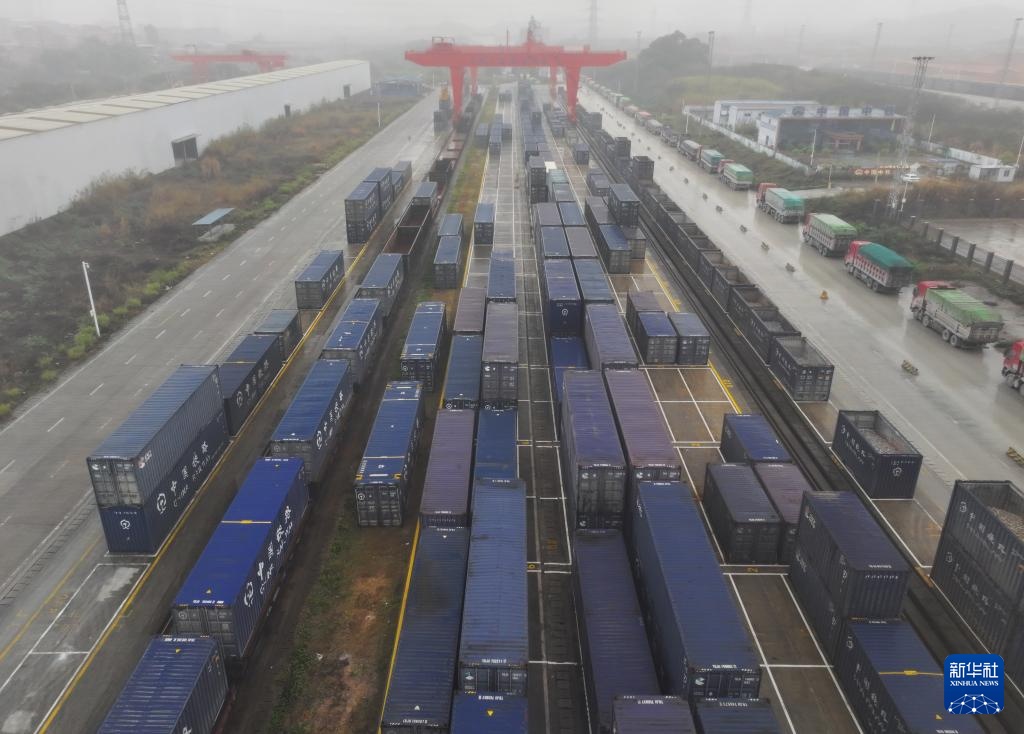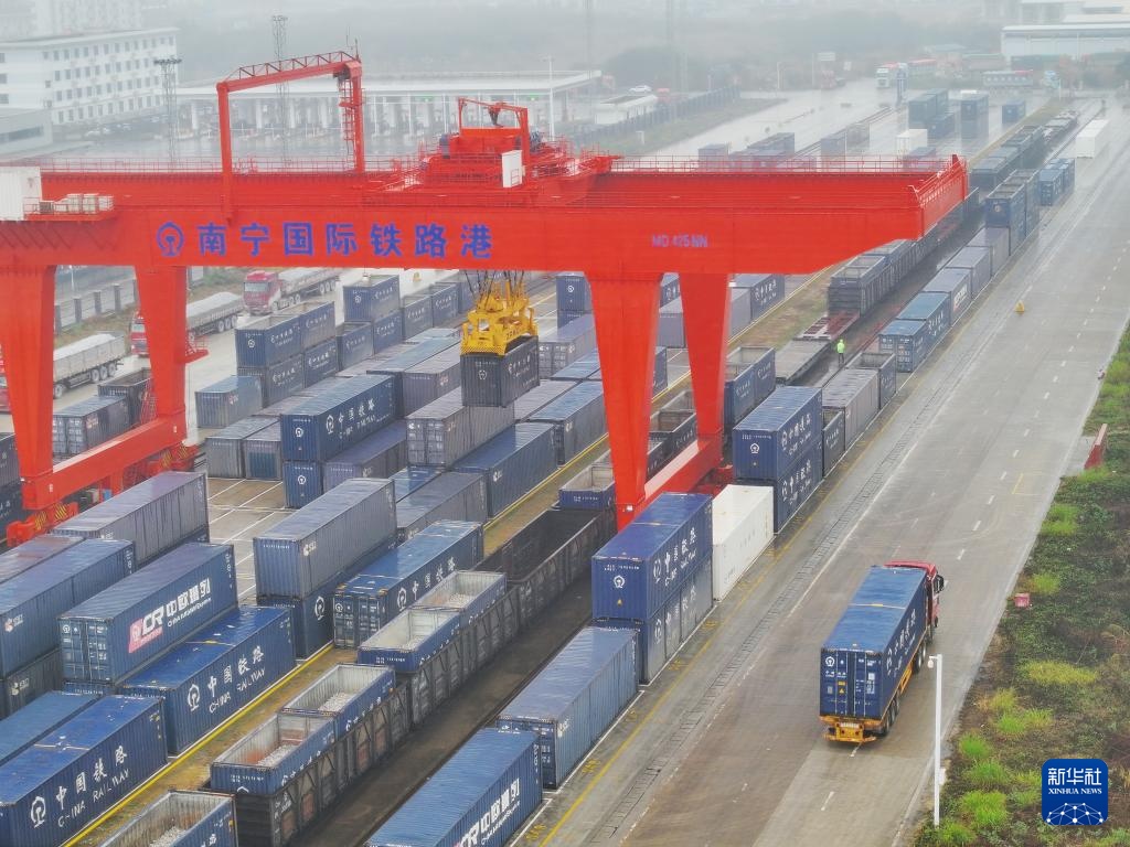 这是南宁国际铁路港繁忙景象(2月21日摄,无人机照片)。