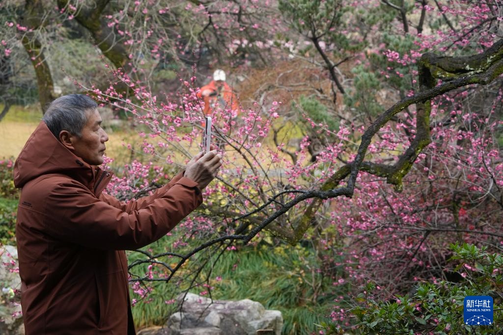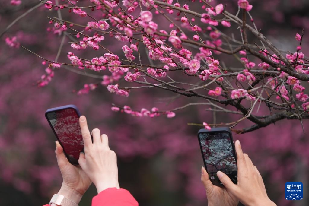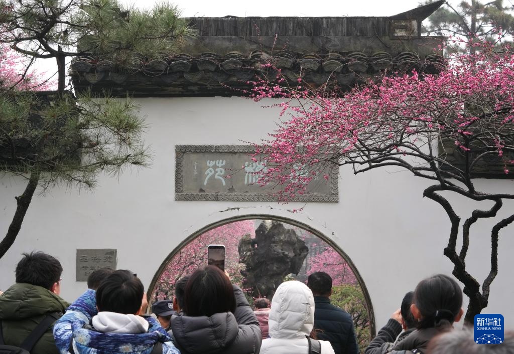 近日,浙江杭州著名赏梅地“灵峰探梅”的梅花迎来最佳观赏期,吸引大批游客前来。“灵峰探梅”位于杭州西湖西侧灵峰山下,自清代起即为赏梅胜地,目前约有5000株、100多个品种的梅花。
