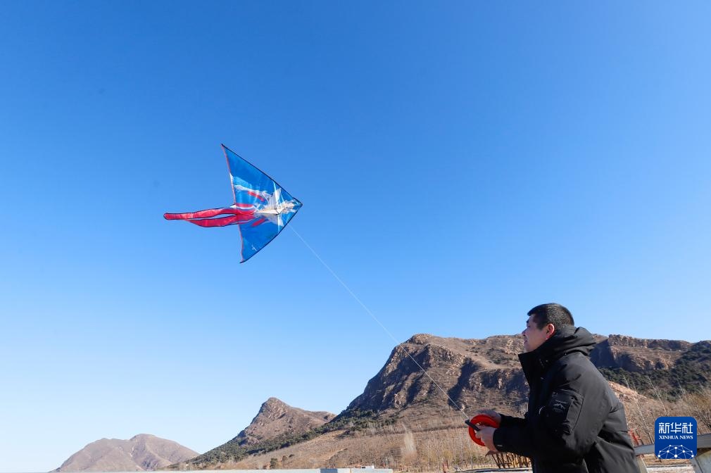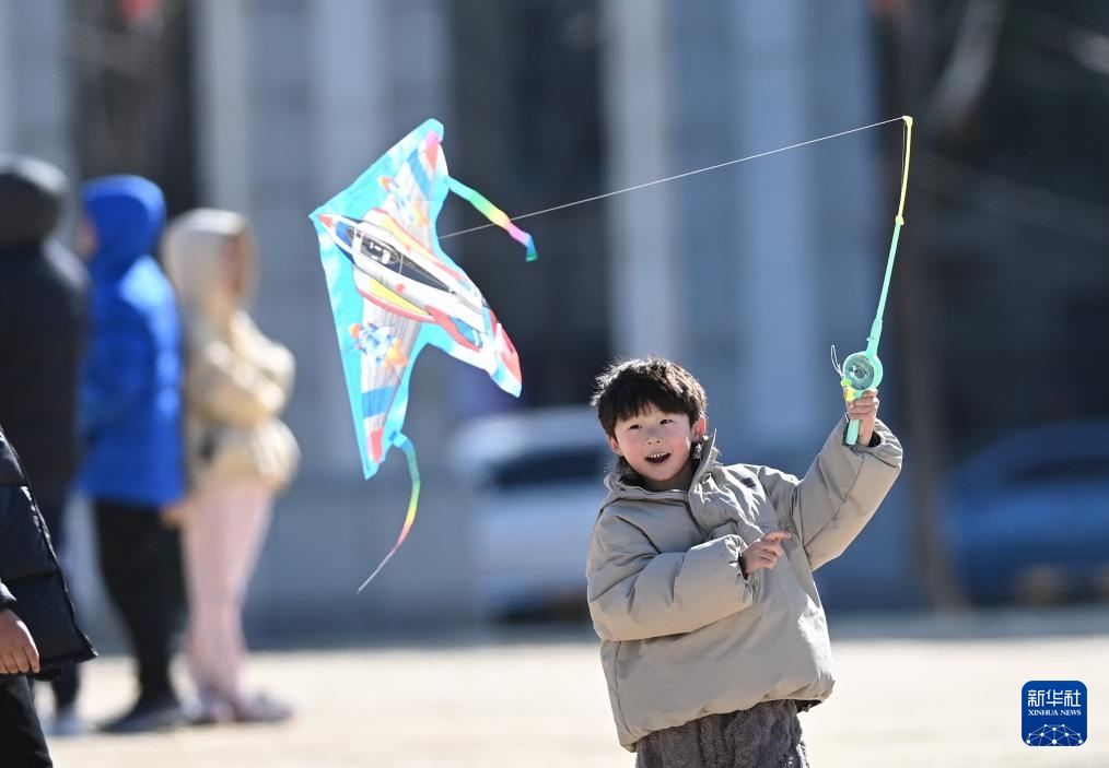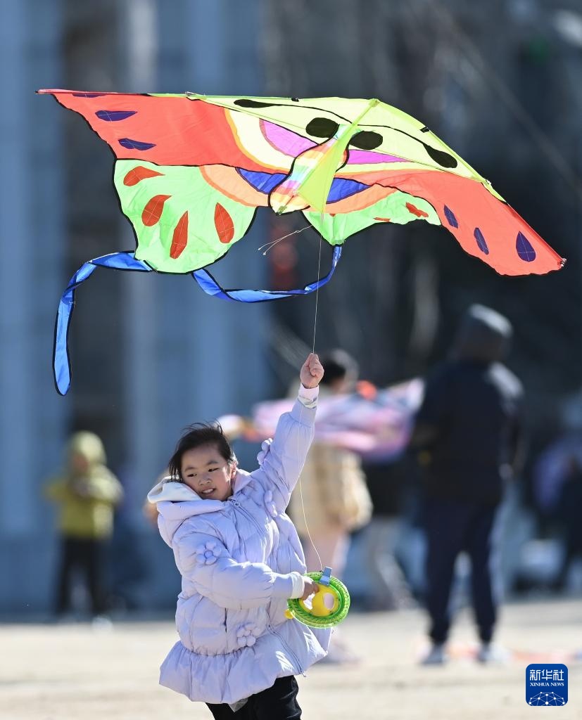 2月23日,市民在河北省遵化市一处公园放风筝。