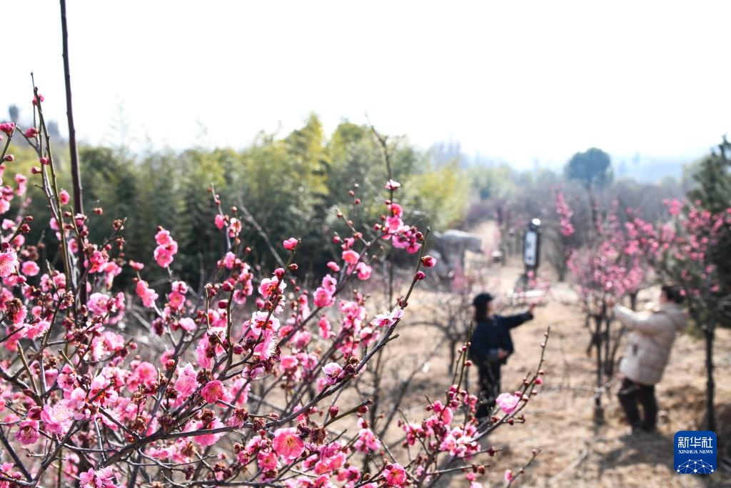 2月23日,游客在河南省济源市承留镇花石村梅园赏花游玩。