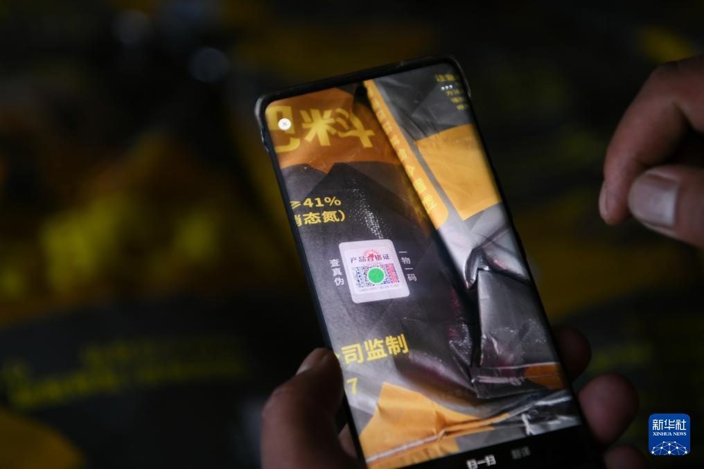 2月24日,在米易县农资供销服务中心,工作人员扫描肥料包上的二维码,农户购买农资后可根据包装上的二维码查询产品信息。