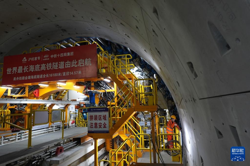 甬舟铁路金塘海底隧道西起浙江宁波市北仑区,东至舟山市金塘镇,全长16.18公里,是世界最长海底高铁隧道。