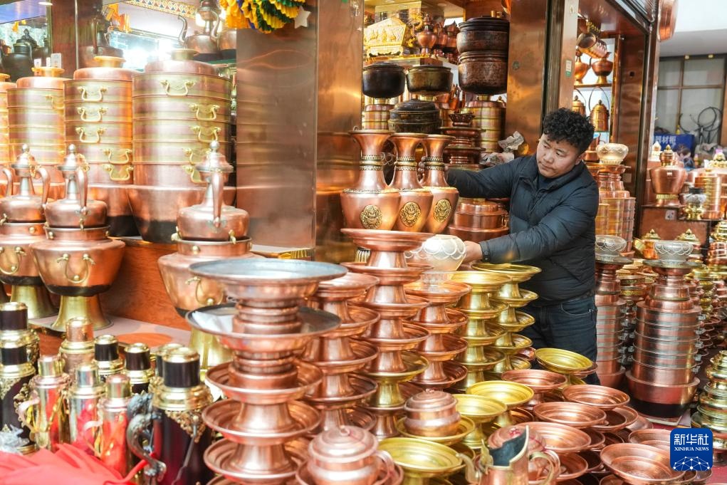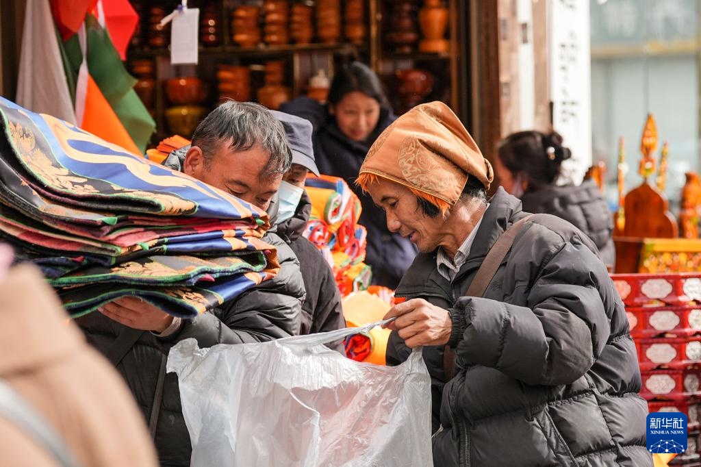藏历新年临近,拉萨街头热闹非凡。人们采买各类传统年货,迎接藏历新年的到来。