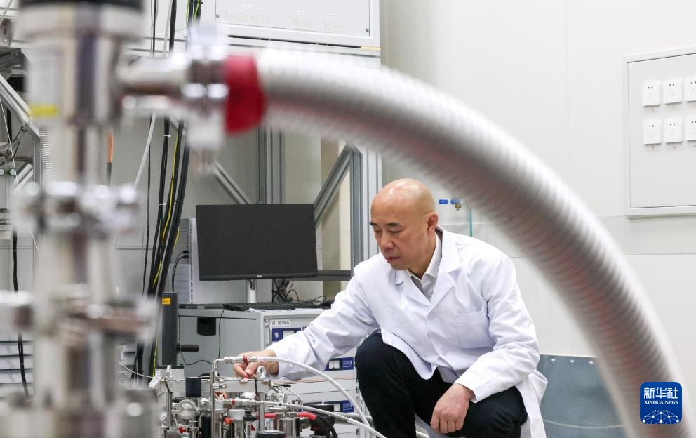 2月26日,中国科学院物理研究所怀柔研究部主任、综合极端条件实验装置首席科学家吕力在极端条件量子态调控系统进行科研工作。