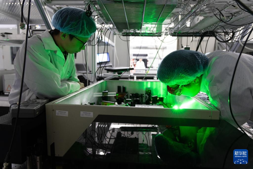 科研人员在综合极端条件实验装置(怀柔)超快光场物性研究系统实验站调整光路(2024年10月16日摄)。