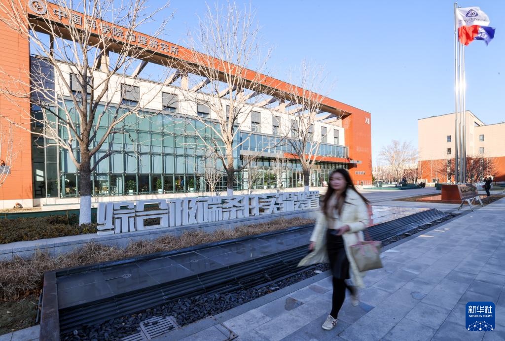 行人从位于北京怀柔的中国科学院物理研究所“综合极端条件实验装置”标识前走过(2月25日摄)。