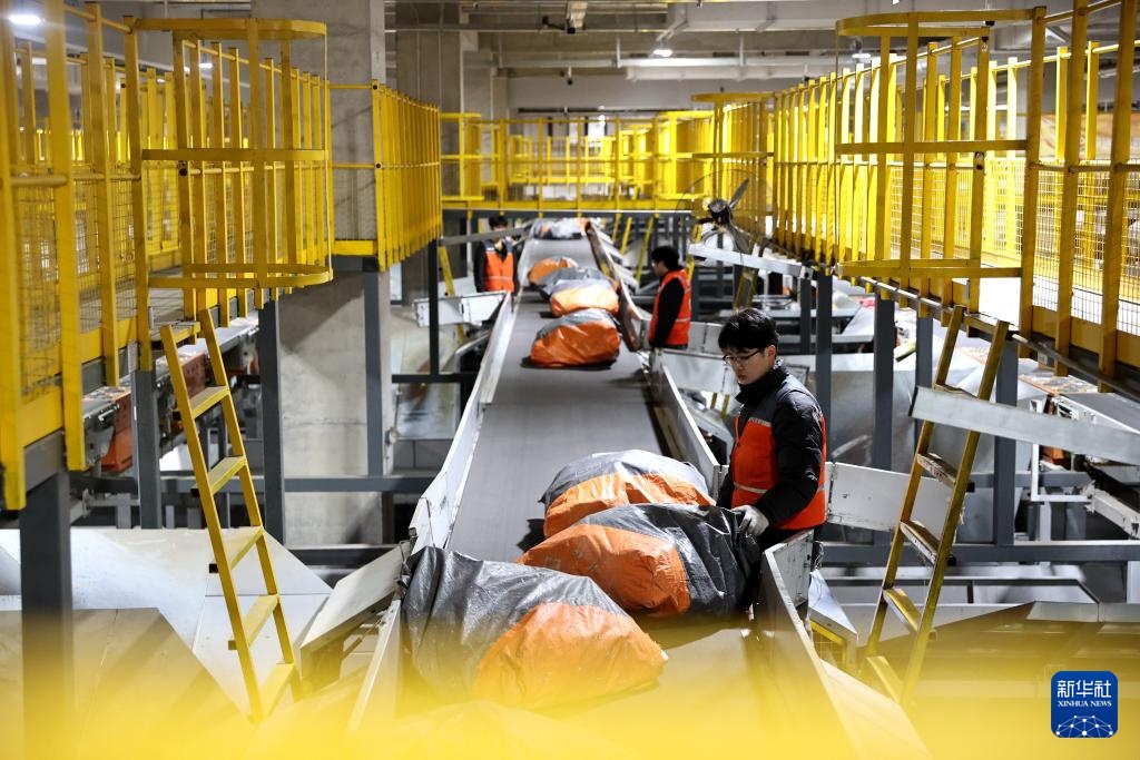 2月26日,工人在固安县的申通快递华北转运中心内工作。