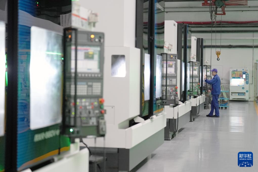 在哈尔滨汽轮机厂有限责任公司叶片分厂,工作人员操作四轴数控铣床进行生产作业(2月26日摄)。