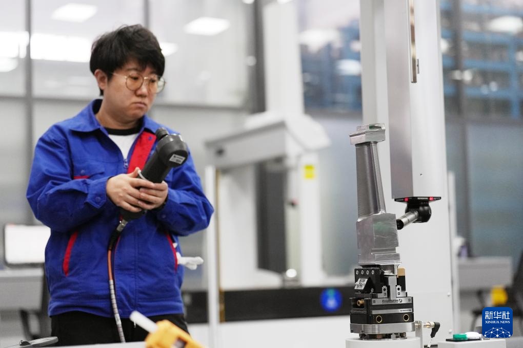 在哈尔滨汽轮机厂有限责任公司三坐标检验室,检验工程师在测量汽轮机叶片型线(2月26日摄)。