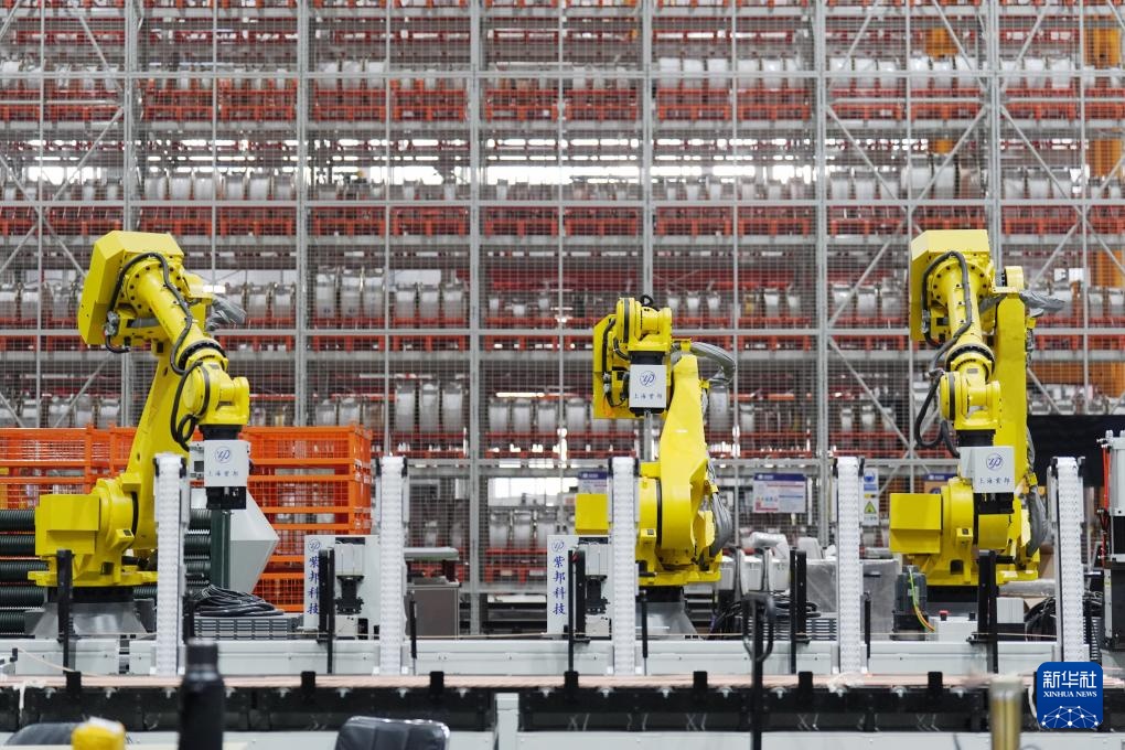 在哈尔滨锅炉厂有限责任公司管子分厂数智车间,数字化物料管理系统将物料进行存储转运作业(2月26日摄)。