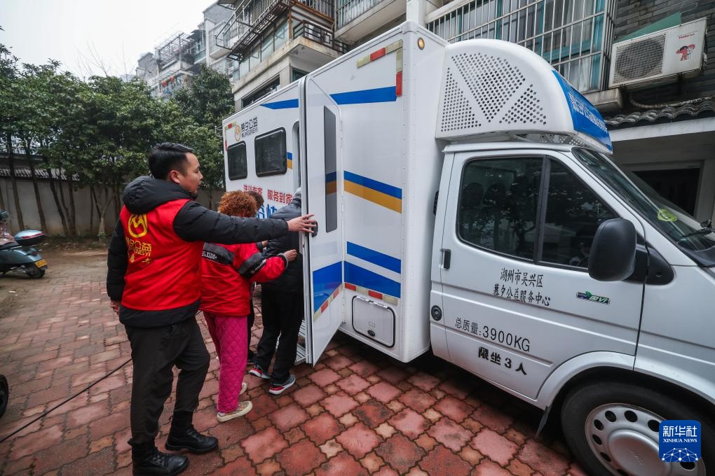 2月27日,在飞英街道塔下街社区,“助浴快车”志愿者为老人提供洗浴、理发等服务。
