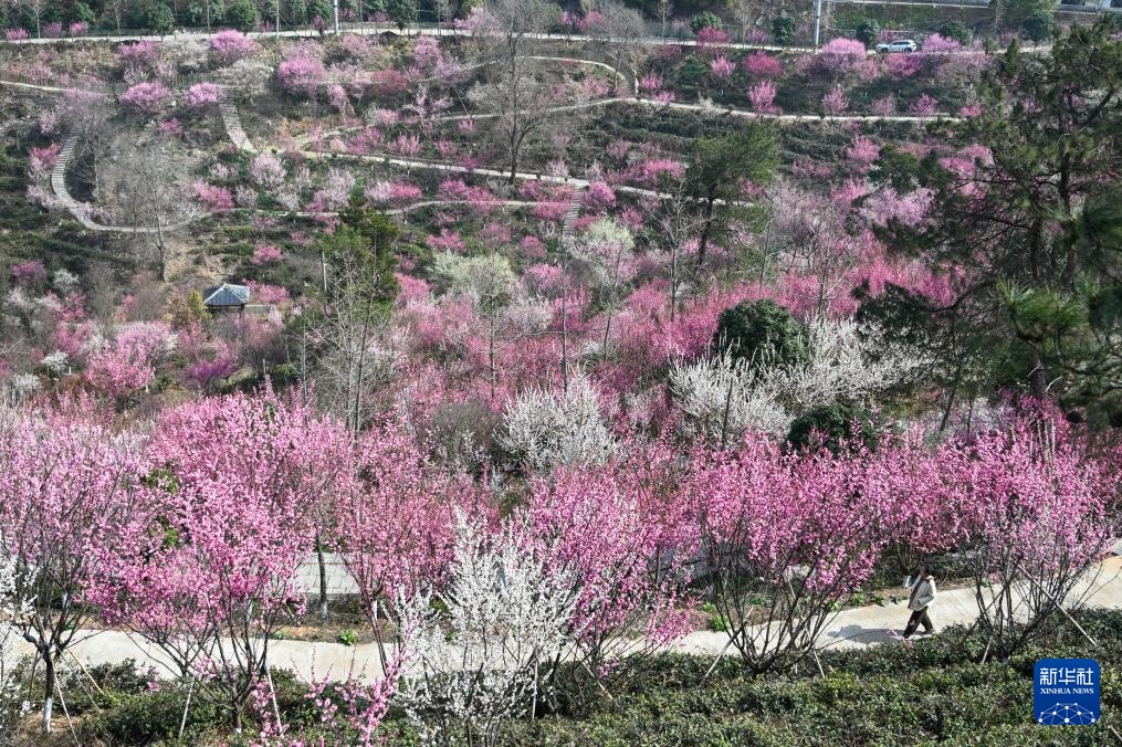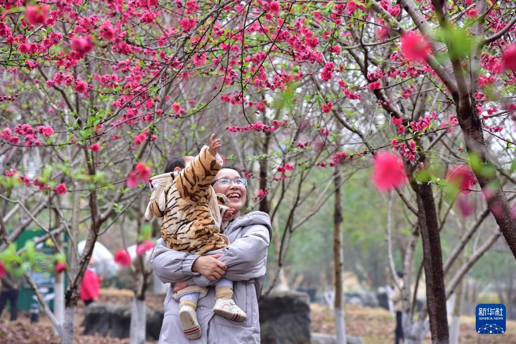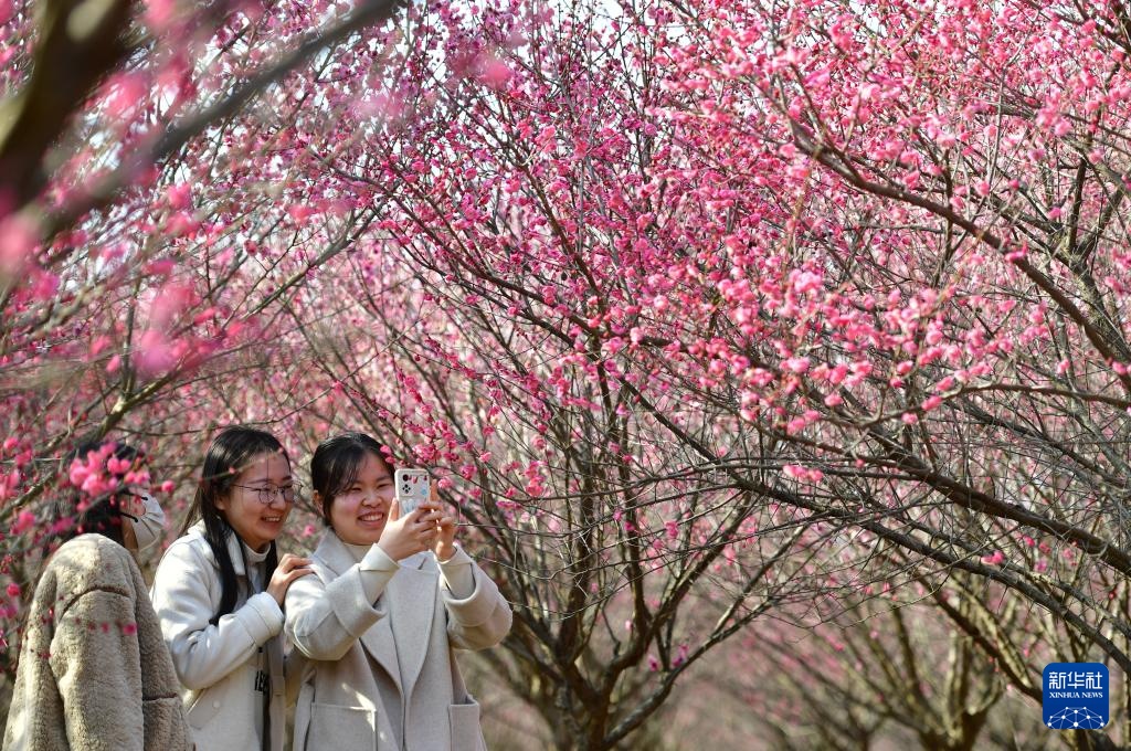 2月27日,游客在合肥市肥西县官亭镇林海景区赏花。