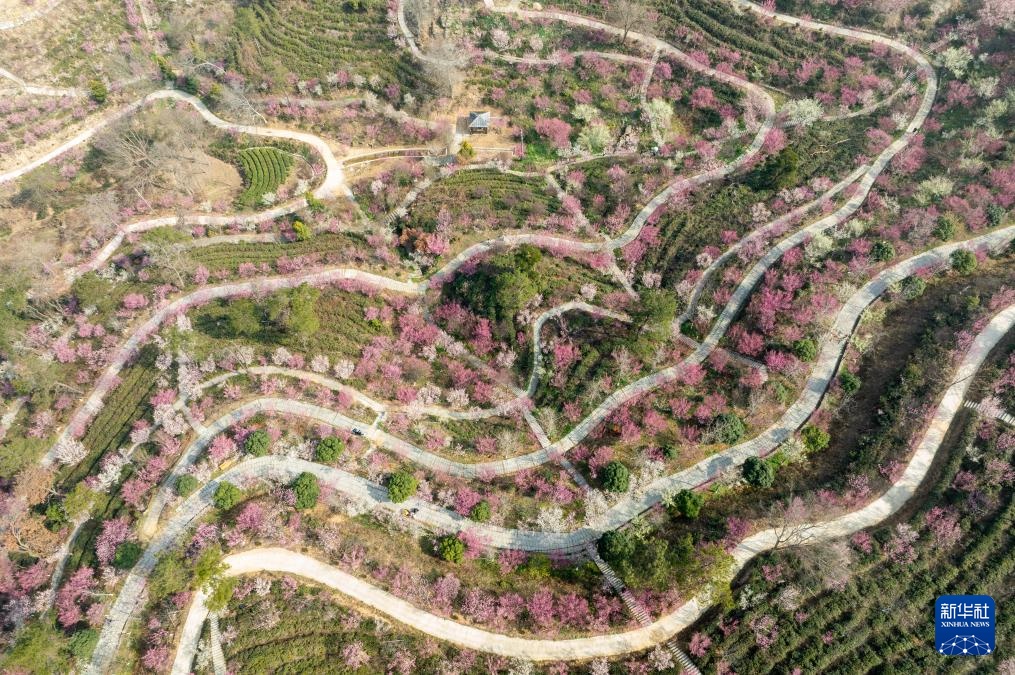 这是2月27日拍摄的武汉市黄陂区花乡茶谷景区(无人机照片)。