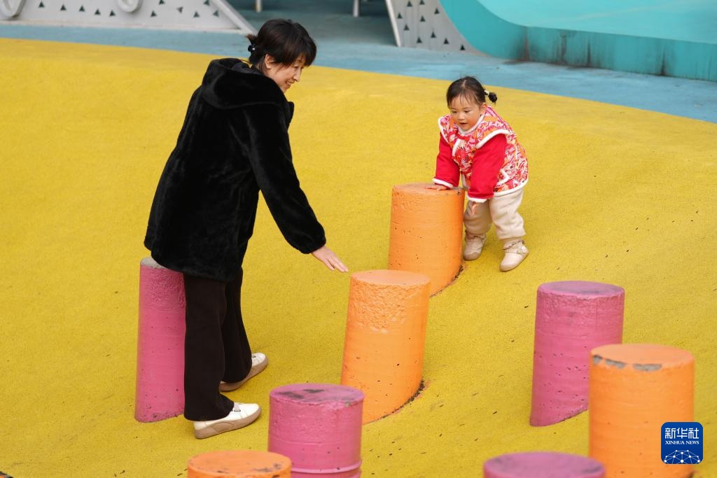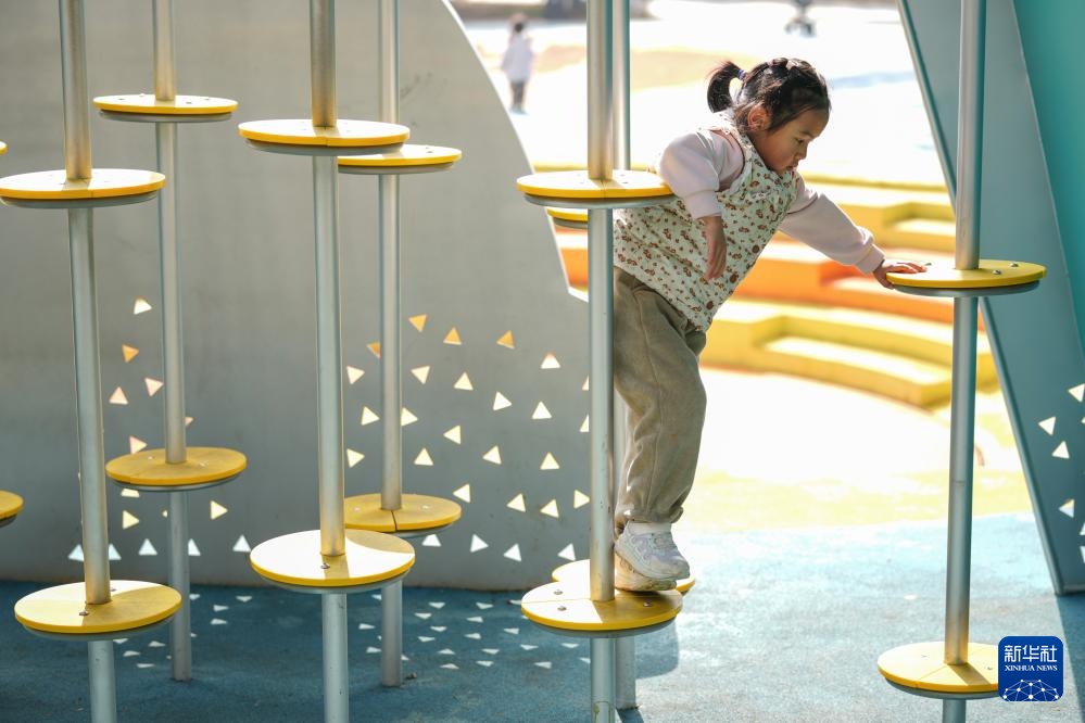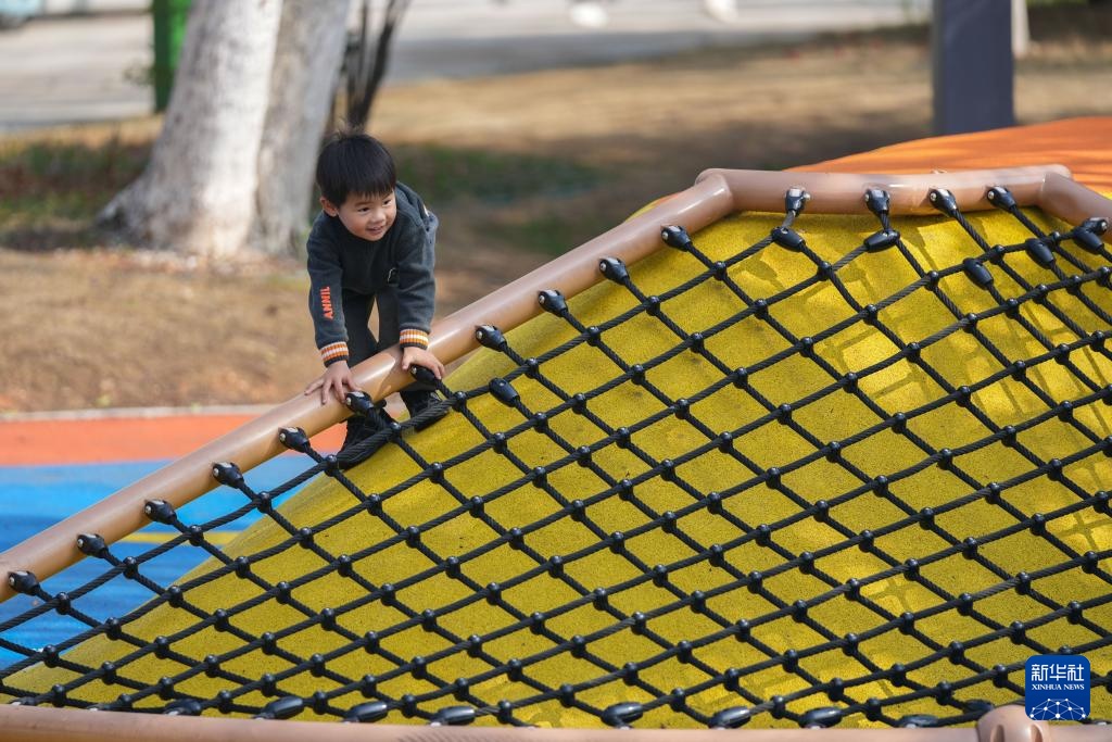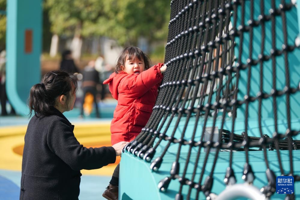 2月27日,小朋友在长沙市银杏公园玩耍。