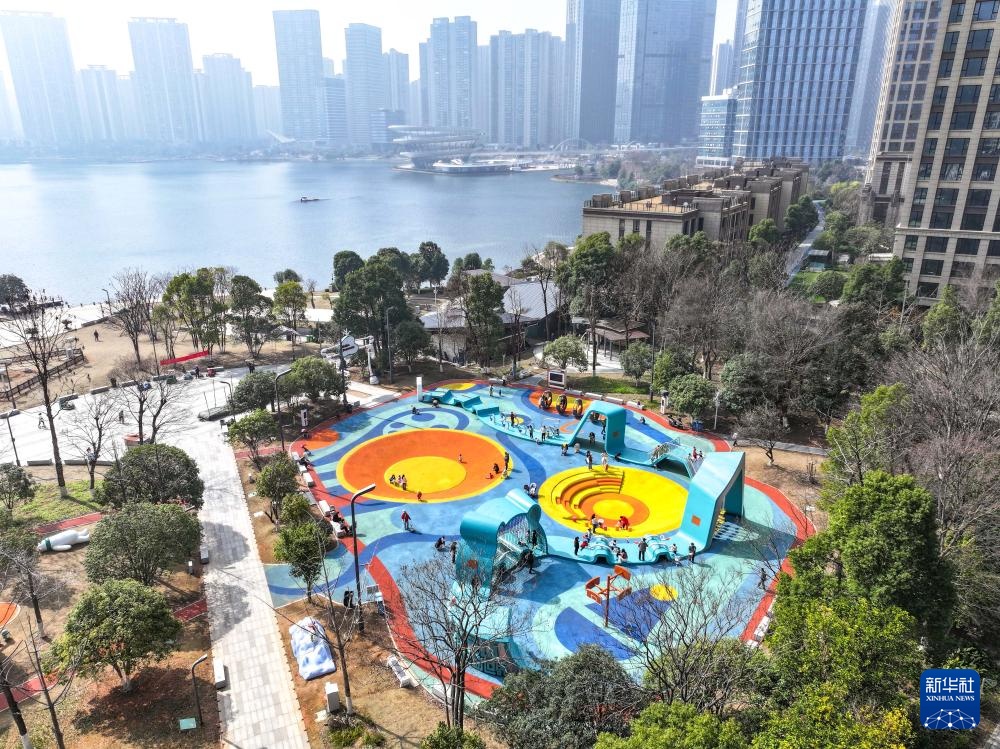 这是2月27日拍摄的长沙市银杏公园一角(无人机照片)。