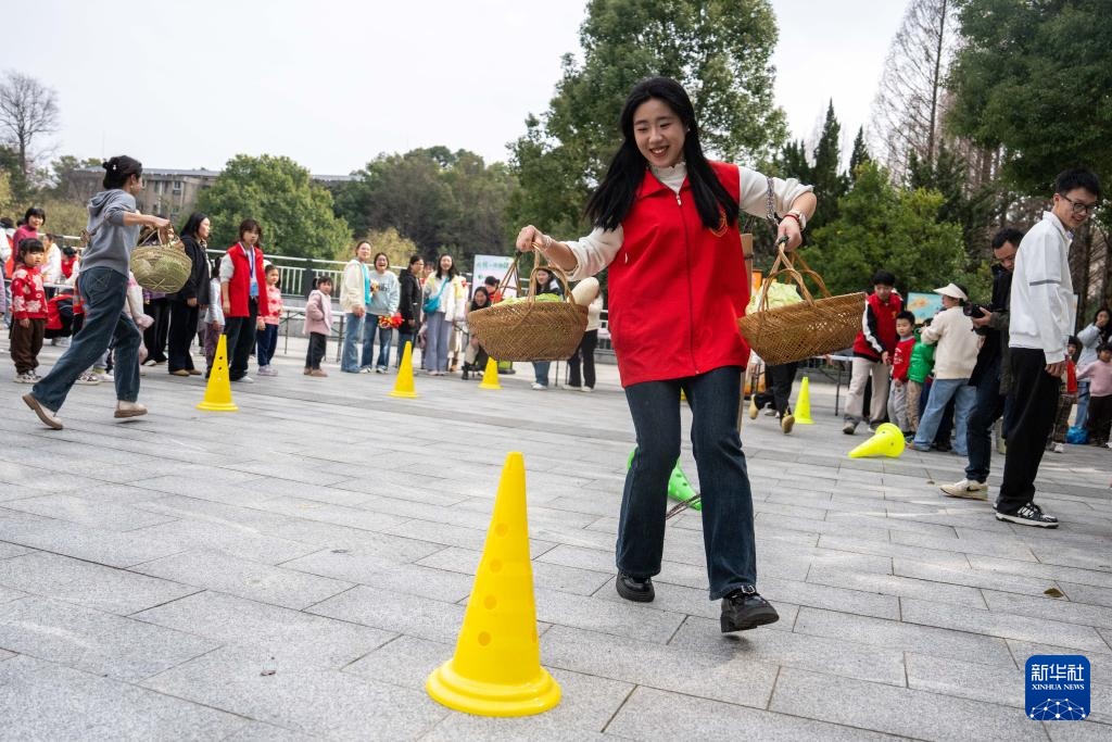 2月27日,湖南农业大学的学生参加农趣运动游戏。