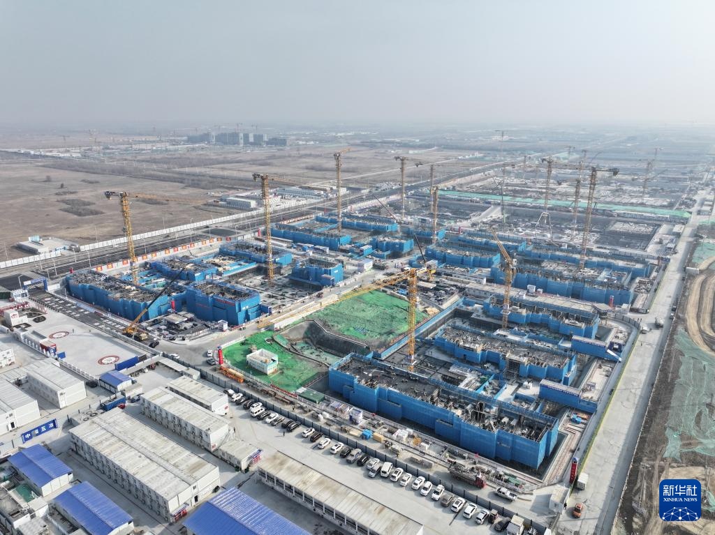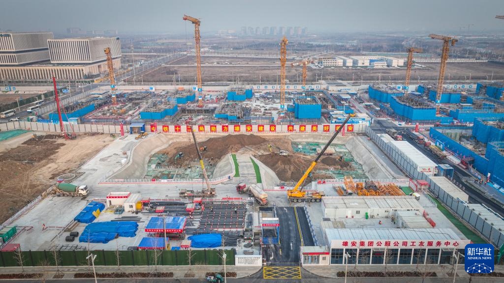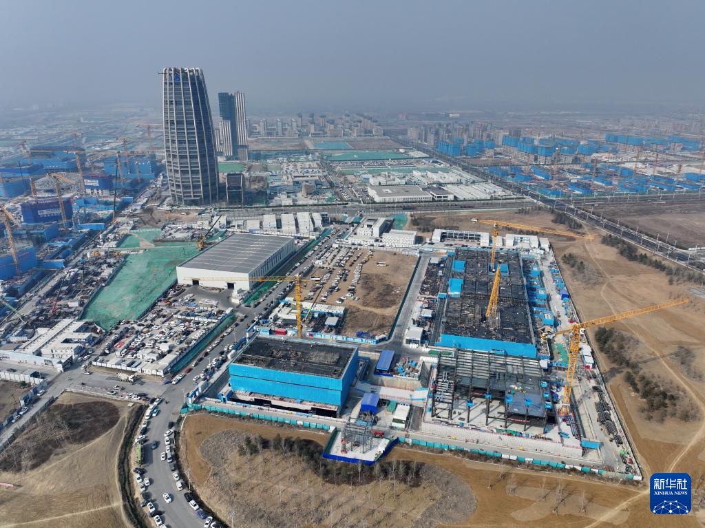 这是雄安新区国贸片区建设现场(2月27日摄,无人机照片)。