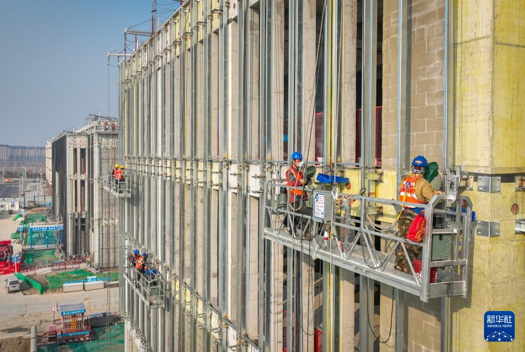 2月27日,中建三局工人在中国矿产资源集团有限公司雄安总部项目建设现场施工。