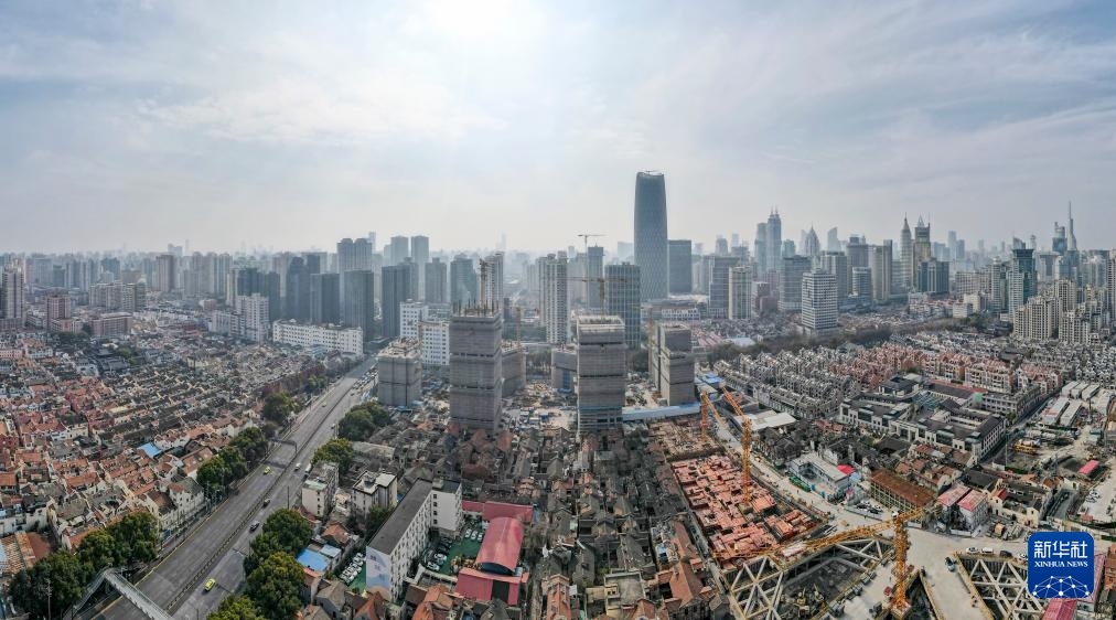 这是2025年2月28日拍摄的上海市黄浦区508-514街坊地块上海壹号院项目施工现场(无人机全景照片)。