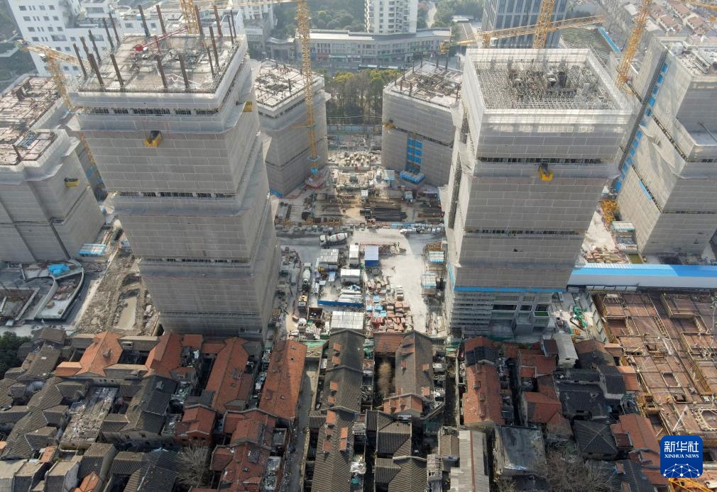 这是2025年2月28日拍摄的上海市黄浦区508-514街坊地块上海壹号院项目施工现场(无人机照片)。