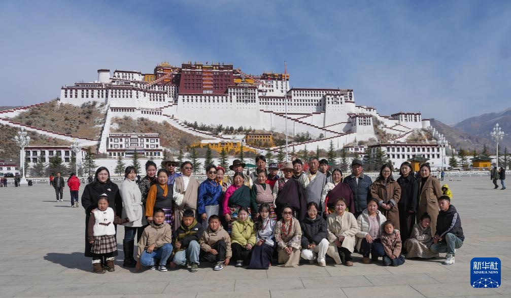 2月28日,来自西藏那曲市比如县的一家人在拉萨布达拉宫前合影留念。