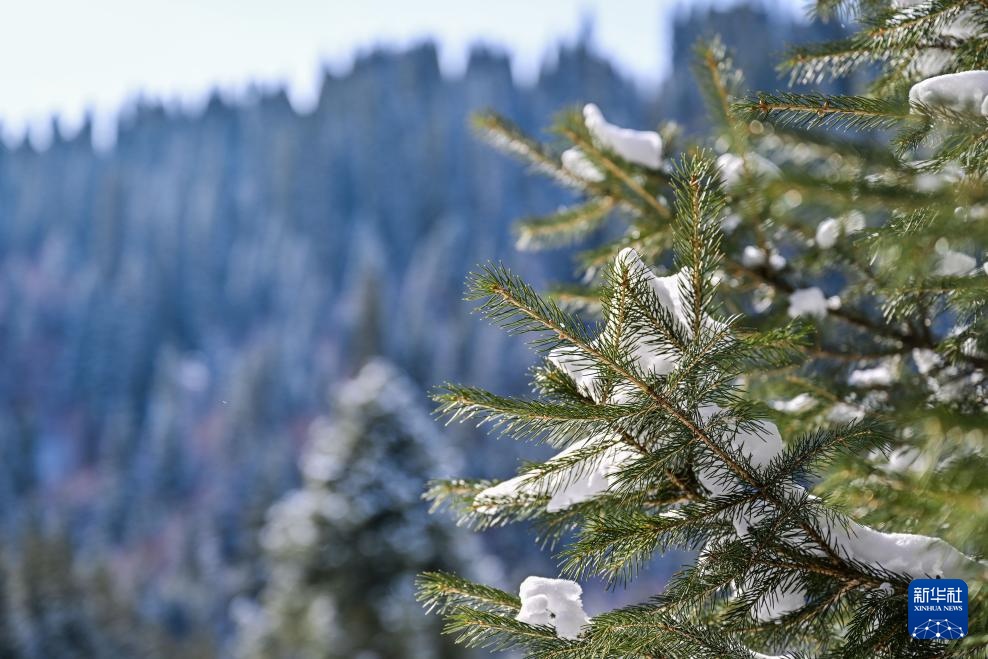 一场降雪过后,位于新疆伊犁哈萨克自治州新源县的新疆那拉提国家旅游度假区一片银装素裹。连绵起伏的草坡被白雪覆盖,巍峨的山峰格外壮观。松林在冰雪中屹立,阳光洒落,美不胜收。