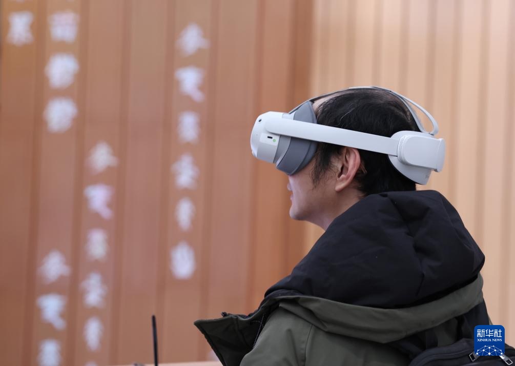 3月2日,在日本大阪,工作人员在世博会中国馆内参观体验。