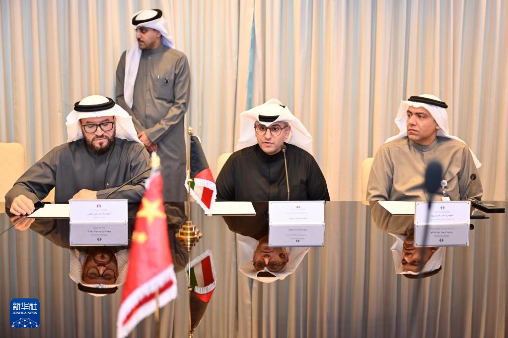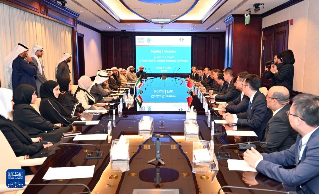 这是3月3日在科威特首都科威特城拍摄的中国能建葛洲坝集团与科威特住房福利总署的签约仪式现场。